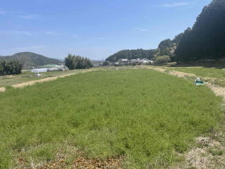 左の田んぼには昨年9月に緑肥ヘアリーベッチの種を蒔き、
