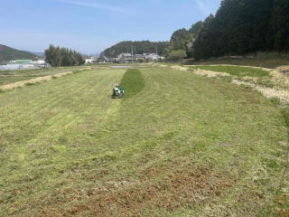今日、モアで刈り取りました(画像)、この後トラクターで鋤き込みます