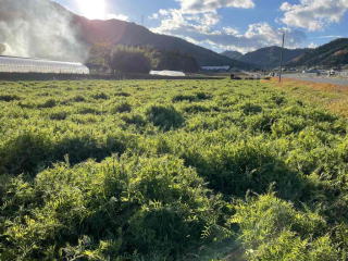 右の田んぼは、前作が黒大豆にため牛糞堆肥を散布しています。
